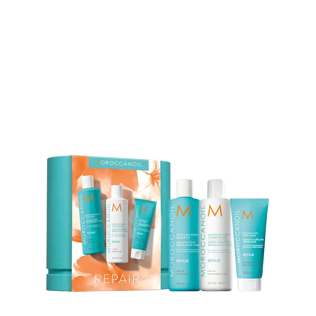 Detta kraftfulla kit är skapat för att reparera och stärka skadat hår – och samtidigt ta hand om huden. Moisture Repair Shampoo och Conditioner bygger upp hårets styrka med keratin, arganolja och fettsyror, medan Restorative Hair Mask ger en intensiv behandling som stärker och återställer elasticitet. För kroppen ingår den milda Shower Gel och den lätt absorberade Body Lotion – båda återfuktande och berikade med närande oljor.