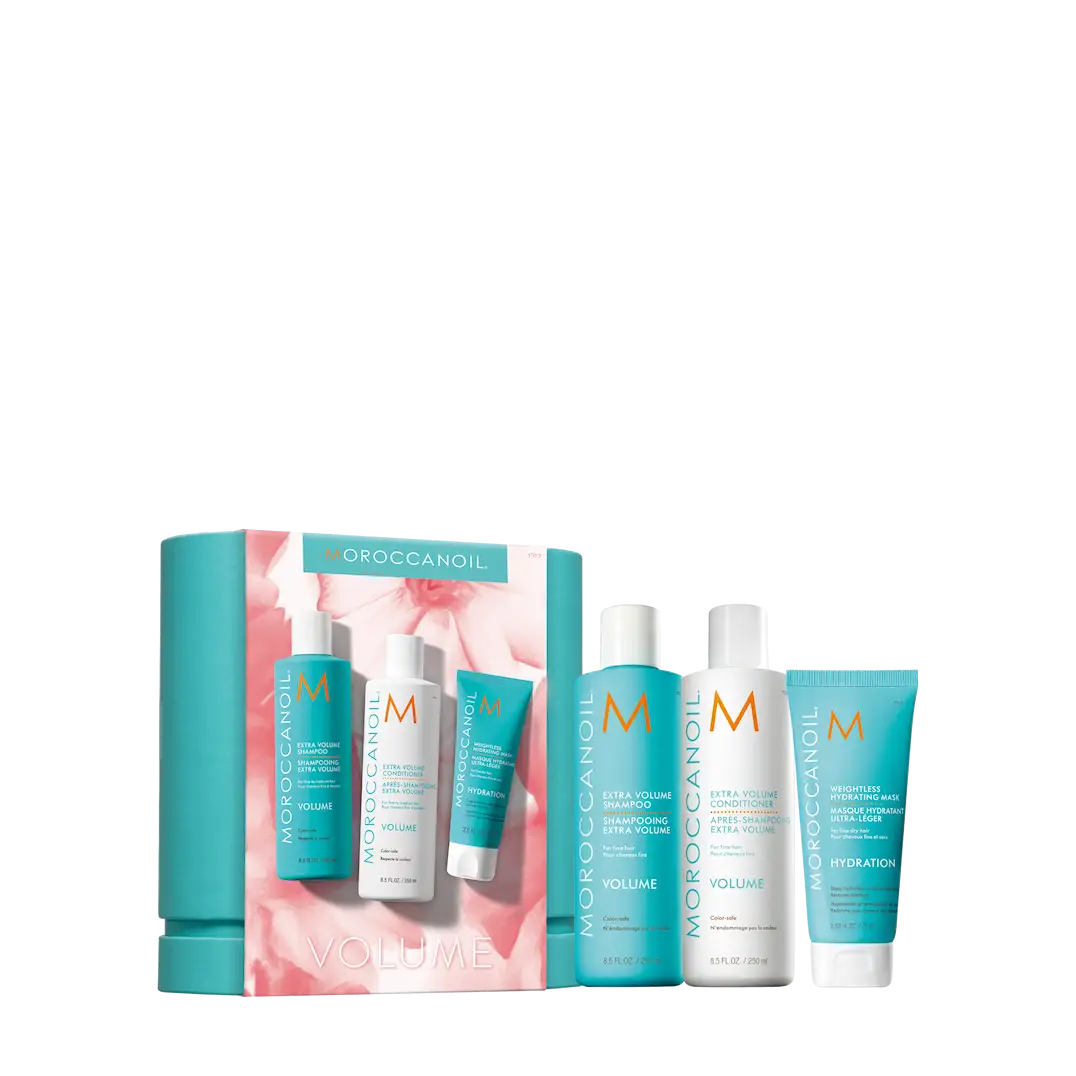 Detta kit är perfekt för dig med fint eller livlöst hår som vill ha mer volym utan att tumma på fukt och vård. Extra Volume Shampoo och Conditioner ger fyllighet, glans och rörelse – utan att tynga ner – tack vare arganolja och lindknoppextrakt. Weightless Hydrating Mask återfuktar på djupet med en viktlös formula som förbättrar hårets struktur och mjukhet.