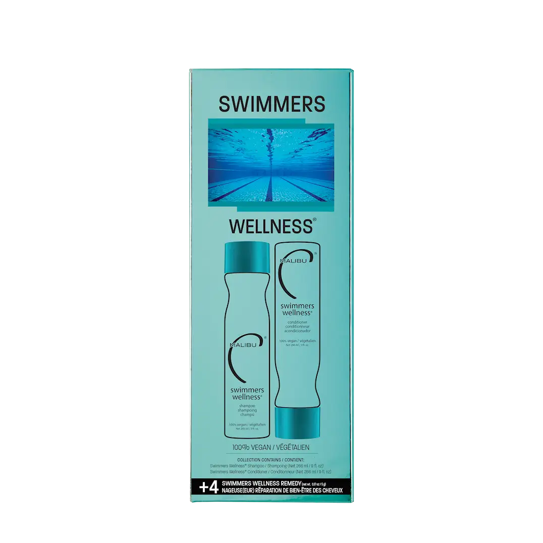 Trassligt, tovigt, missfärgat simmarhår? Detta exklusiva kit har allt du behöver för att ta bort klor, koppar och andra poolämnen samtidigt som det skonsamt rengör och vårdar. Upptäck ett glansigare, friskare och tovfritt hår! Sulfatfri schampo och näringsrik balsam arbetar med de veckovisa behandlingarna för att hålla ditt hår mjukt, glansigt och friskt!